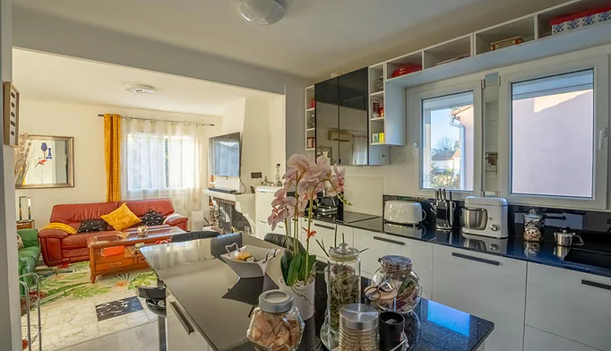 Édifiée sur un terrain d'environ 1500 m², la maison s'organise sur deux niveaux et se compose de :