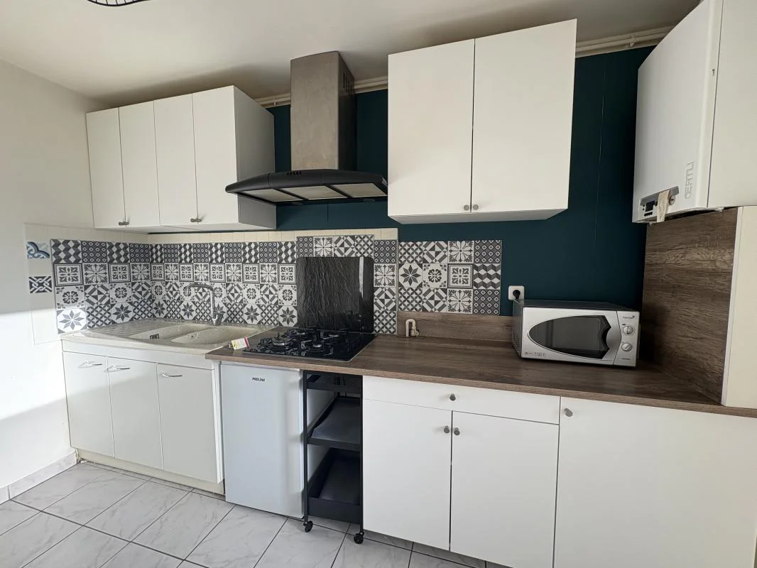 F2 de 39.59 m2 composé d'une entrée avec placard desservant une salle d'eau avec emplacement machine a lavé, une chambre semi-aveugle avec placard. Un salon lumineux avec cheminée décorative et une cuisine aménagée et équipée. Vous bénéficierez également d'une cave. Mobilier mis à disposition.