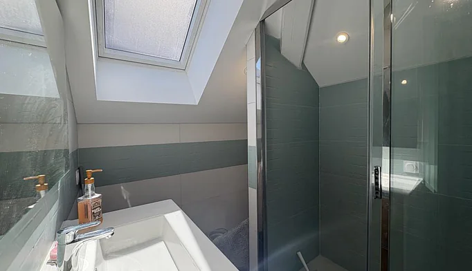 L'espace nuit comprend une chambre avec rangements ainsi qu'une salle d'eau avec WC.
