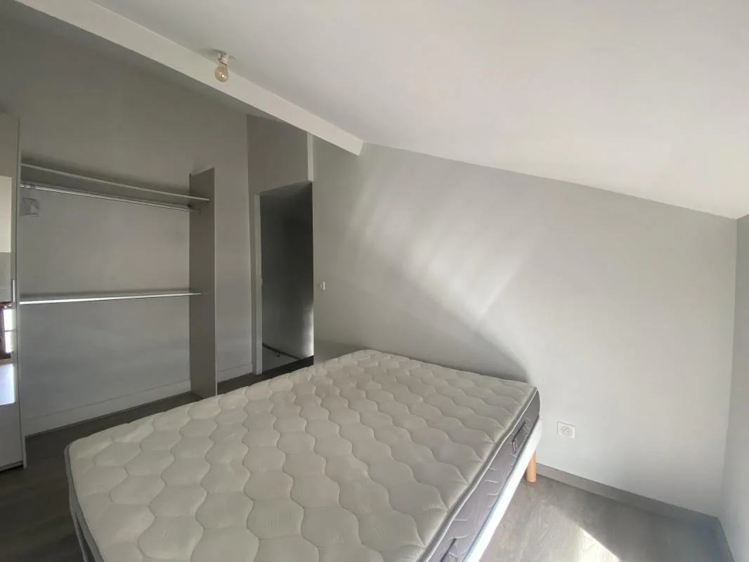Appartement T2 meublé en duplex situé au 2ème étage sans ascenseur d'un petit immeuble, se composant au 1er niveau d'une cuisine ouverte sur le séjour, à l'étage une chambre, une salle d'eau avec WC.