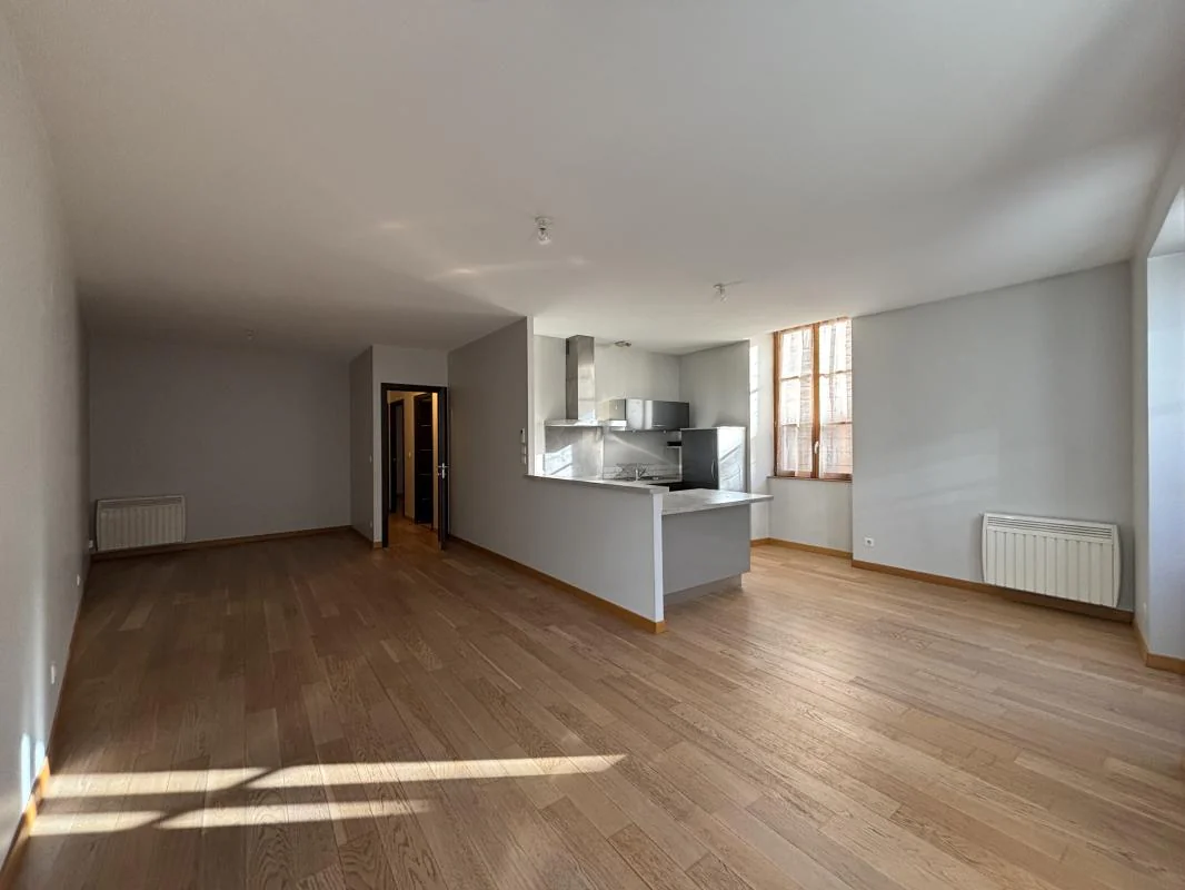 REF : #165 - T3 rénové d'une surface de 74.95 m² situé au 2ème étage avec ascenseur composé d'un hall d'entrée desservant une cuisine aménagée ouverte sur un séjour, 2 chambres, une salle d'eau, WC séparés.