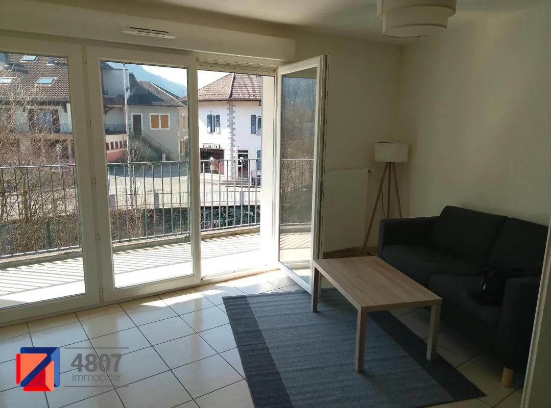 Scionzier CENTRE - T2 MEUBLE - T2 meublé de 41.85m² comprenant : une entrée, une cuisine équipée ouverte sur séjour, un balcon, une chambre, une SDB avec WC.