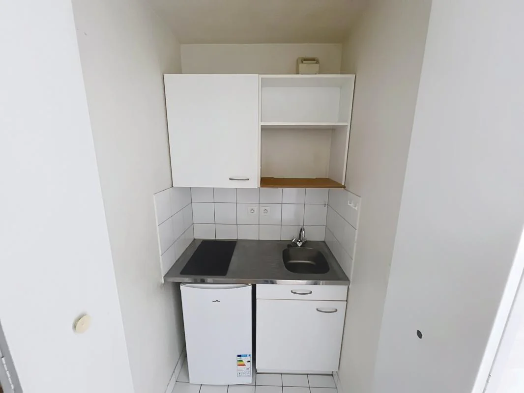 Agréable studio, proche facultés, composé d'une entrée avec une penderie, d'un séjour, d'une kitchenette équipée, d'une salle d'eau et WC.