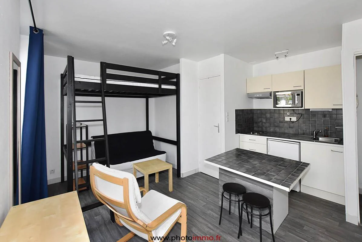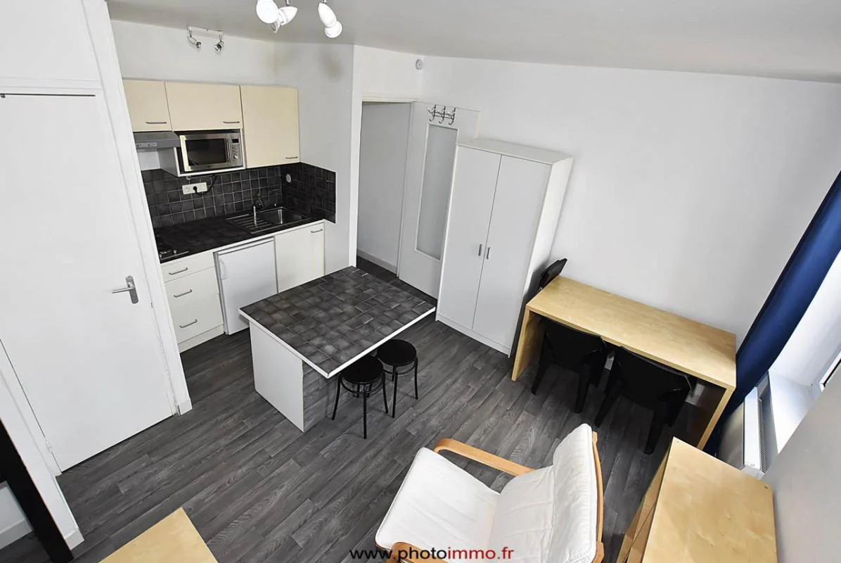 Beau studio entièrement équipée situé en face de l'école de commerce et à proximité des facs. Il se compose d'une belle pièce de vie avec cuisine équipée ( plaques, hotte, frigo, micro-ondes) et d'une salle d'eau. Un grand balcon vient compléter ce bien.