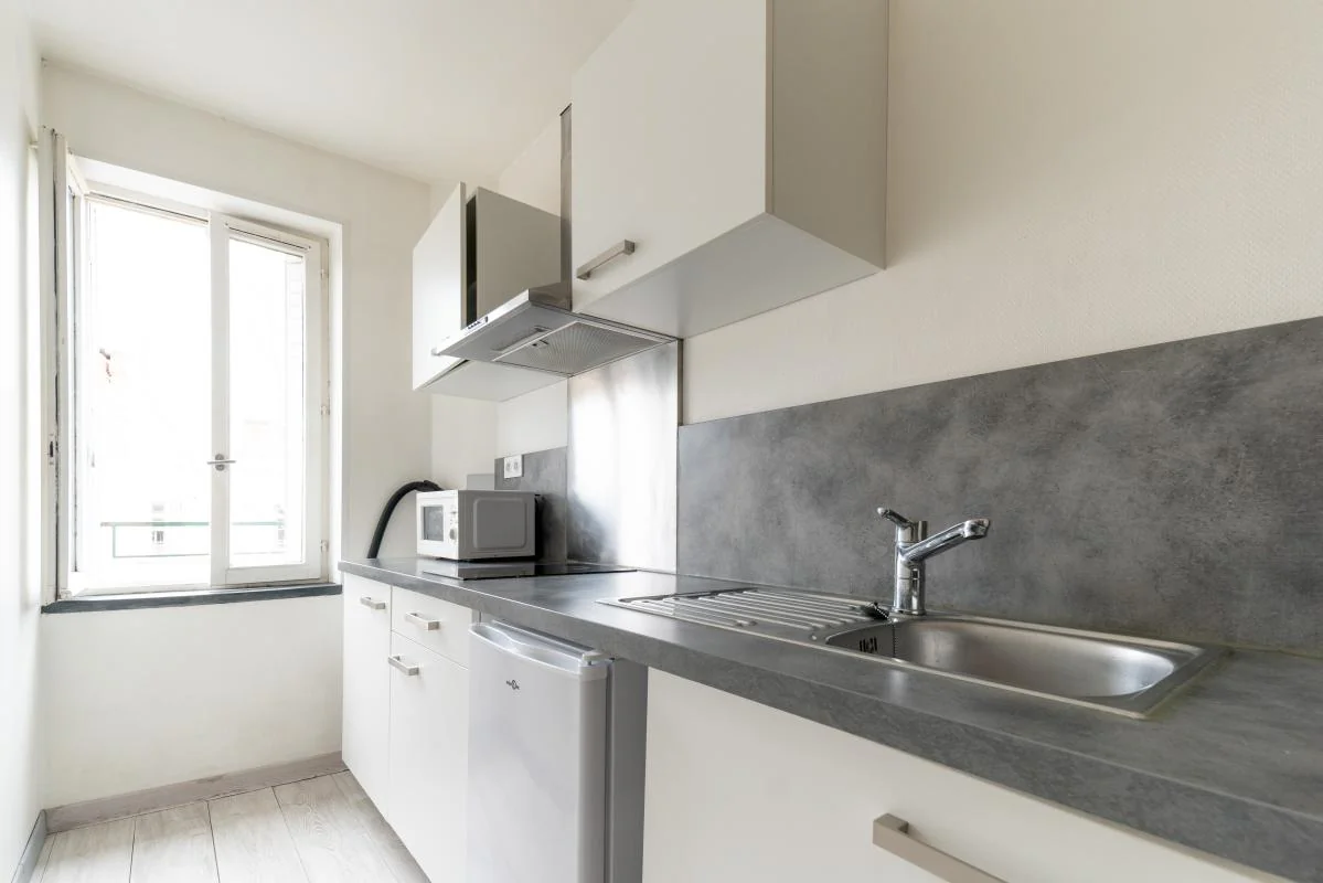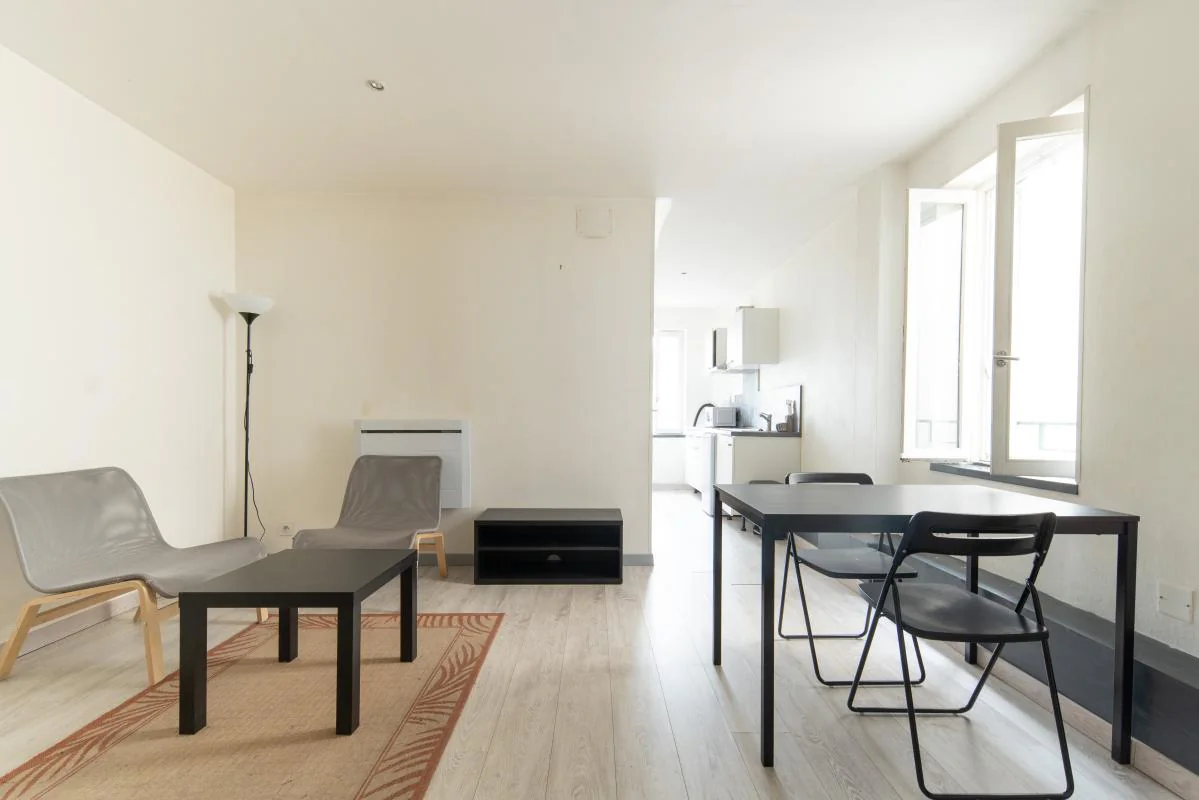 À proximité immédiate de l'école de commerces, des facultés et des transports, T2 meublé composé d'une pièce principale, d'une chambre, d'une cuisine équipée et d'une salle de bains avec WC.