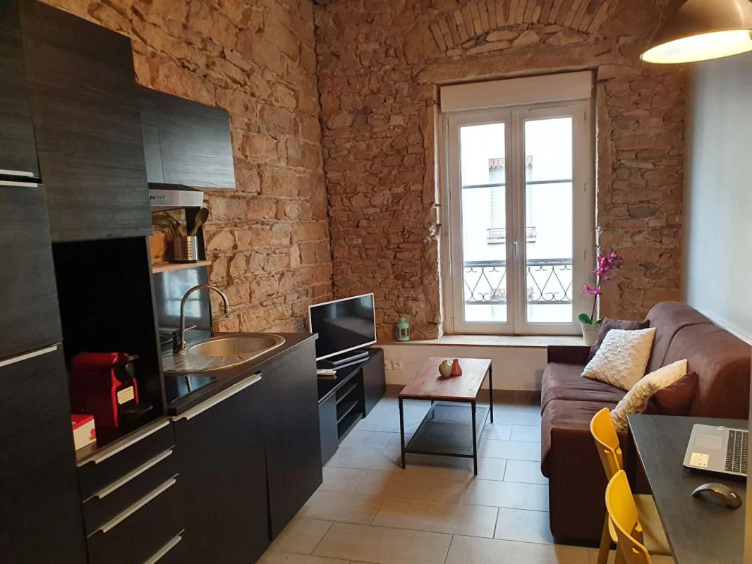 QUARTIER VOLTAIRE-SAINT AMOUR, A DEUX PAS DU METRO B (Arrêt Place Guichard - Bourse du Travail) ET TOUTES COMMODITES, au 2ème étage sans ascenseur, Appartement meublé climatisé composé d'un Séjour avec coin Cuisine équipée, d'une Mezzanine de 4,91m² et d'une Salle de bains avec WC.