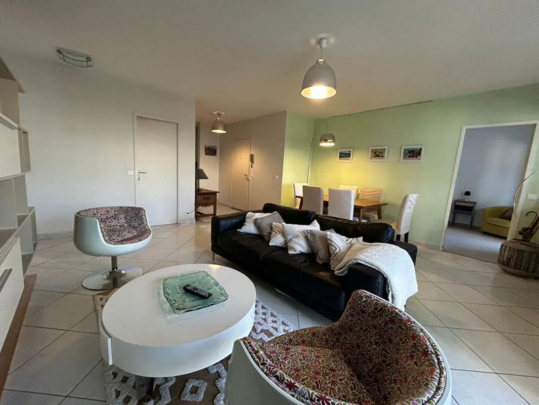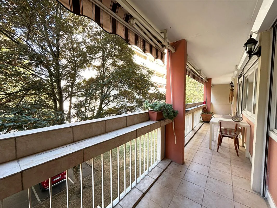 DANS UNE RESIDENCE ARBOREE ET SECURISEE, au 2ème étage avec ascenseur, Appartement meublé composé d'un Hall d'entrée, d'un beau Séjour donnant sur un grand Balcon filant de 15m², d'une Cuisine indépendante aménagée et équipée donnant sur une Loggia, de trois Chambres dont 2 donnant également sur le Balcon, d'une Salle de d'eau, d'un W.C séparé et d'une place de parking extérieure - Eau froide et chauffage compris dans les charges.