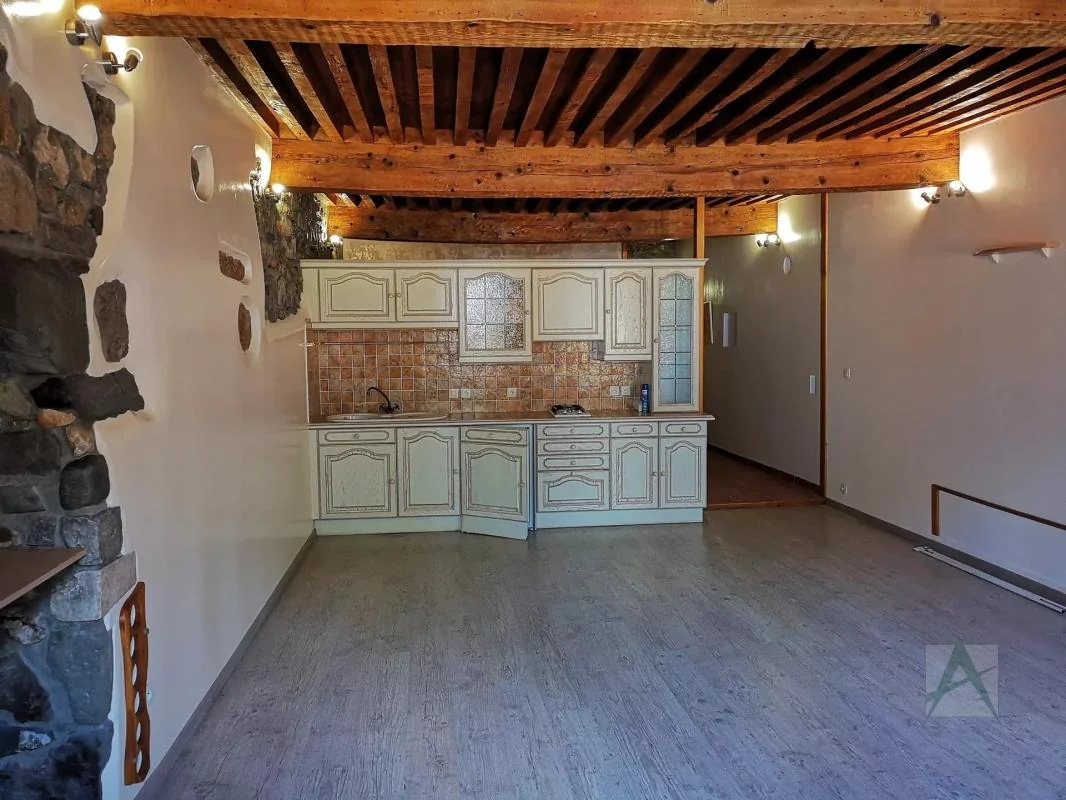 A louer, dans le centre historique de Chambéry, un appartement de type 1 Bis de 53.28m² au 2ème étage sans ascenseur comprenant : un hall d'entrée avec placard, un vaste séjour avec coin cuisine aménagée et équipée (meubles, plaque de cuisson, frigo), une chambre et une salle de bains avec wc. Poutres et pierres apparentes.