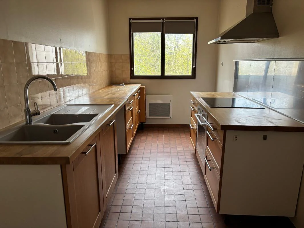 La cuisine entièrement aménagée complète harmonieusement l'espace de vie.