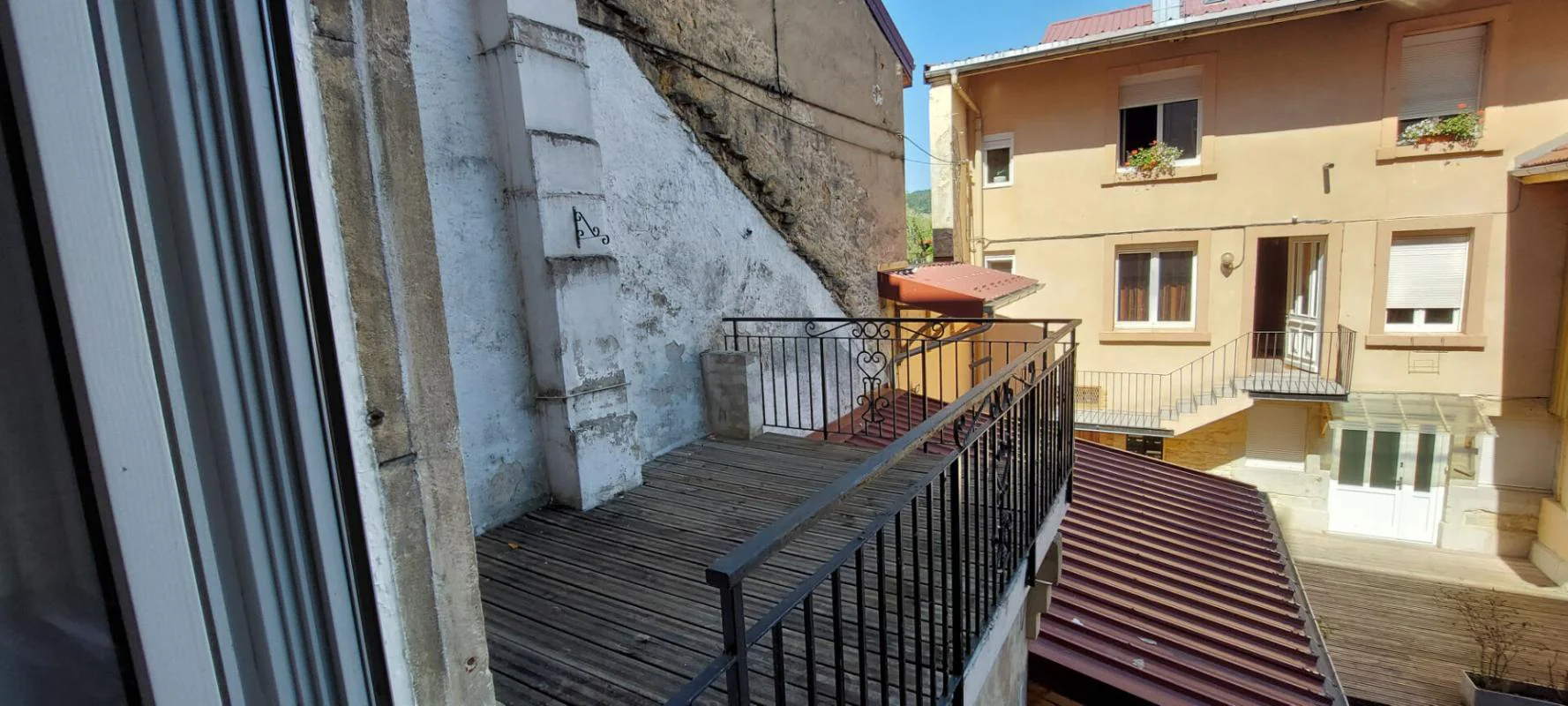 Pontarlier, rue de Besançon proche place Saint Pierre, un appartement de type F3 au premier étage comprenant : une grande entrée avec placard et rangement, une cuisine entièrement équipée et aménagée donnant sur une terrasse, un séjour, deux chambres dont une avec dressing , une salle d'eau avec douche , un WC indépendant, un petit cagibi sur le palier, un local à vélo dans la cour à l'arrière de l'immeuble et une cave.