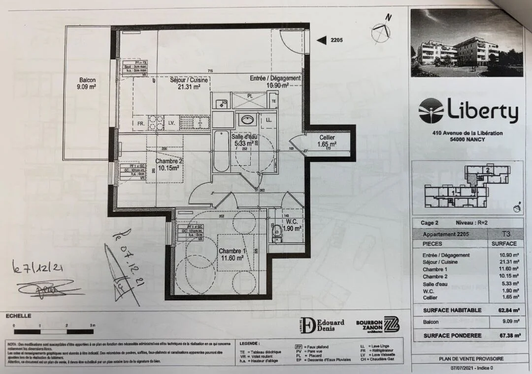 NANCY Appartement 3 pièces 62.84 m² + BALCON + PARKING