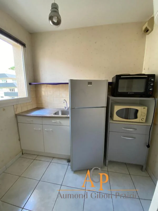 Le logement se compose d'une entrée avec placard, d'un séjour avec coin cuisine équipé et aménagé, ainsi que d'une salle de bains avec WC.