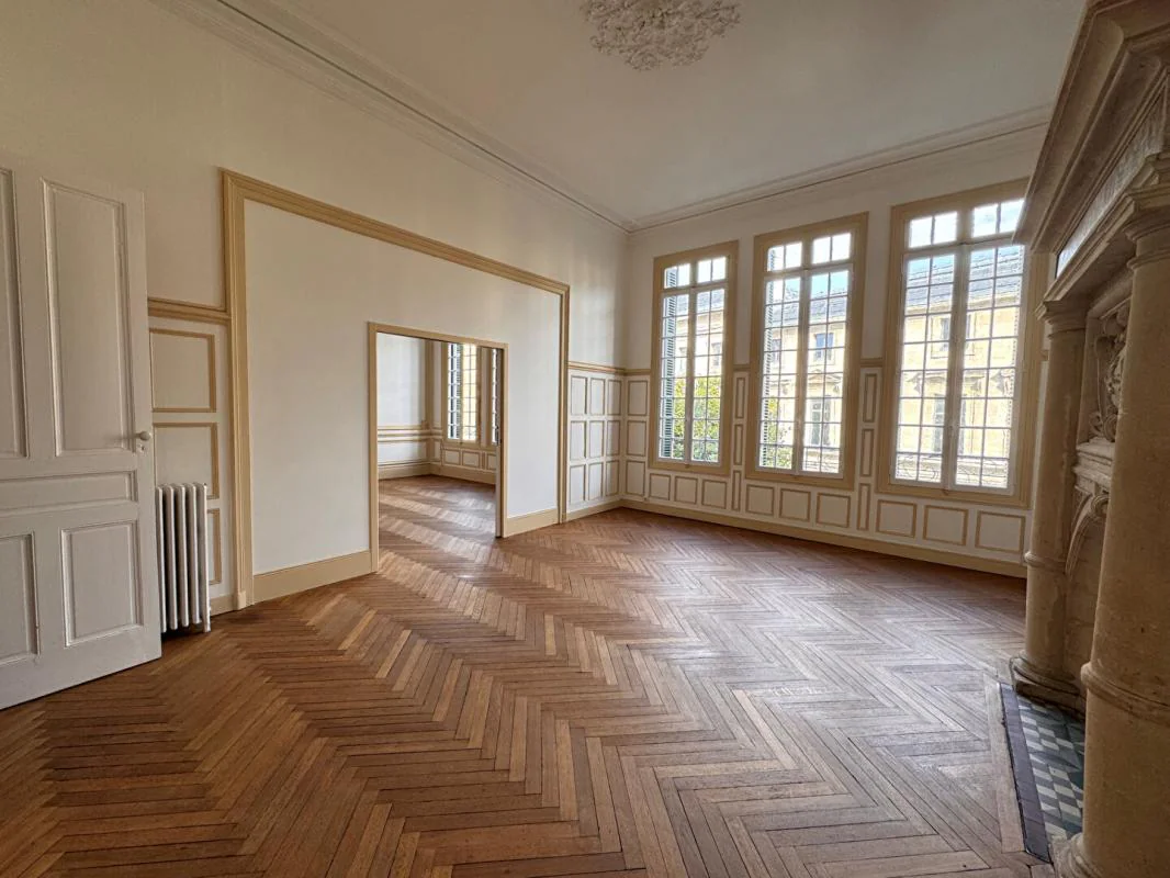 Coup de coeur assuré pour ce très bel appartement F3 de 92m2 avec parquets à chevrons, moulures et cheminées classées.