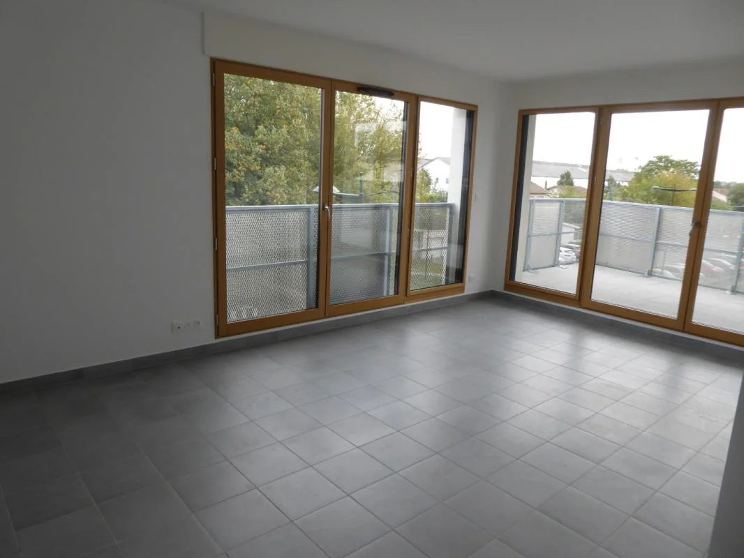 Un T3 au deuxième étage d'une résidence récente au pied du tram, comprenant : une entrée, une cuisine aménagée, un séjour donnant sur un balcon, deux chambres et une salle de bain avec WC séparé.