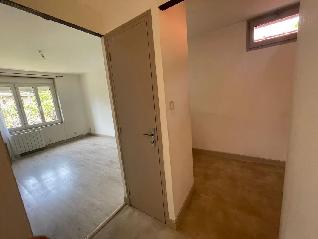 Agréable T2 lumineux de 38m² à proximité du centre-ville d'Aubin, composé d'une entrée avec placard, d'une cuisine ouverte sur séjour, d'une chambre, d'une salle d'eau, et de WC séparés.