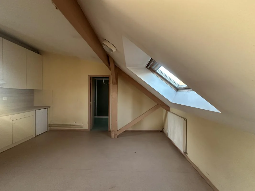 Pièce principale avec coin cuisine équipé (placards, hotte, frigo, plaque induction), salle d'eau, WC. Chauffage individuel gaz.