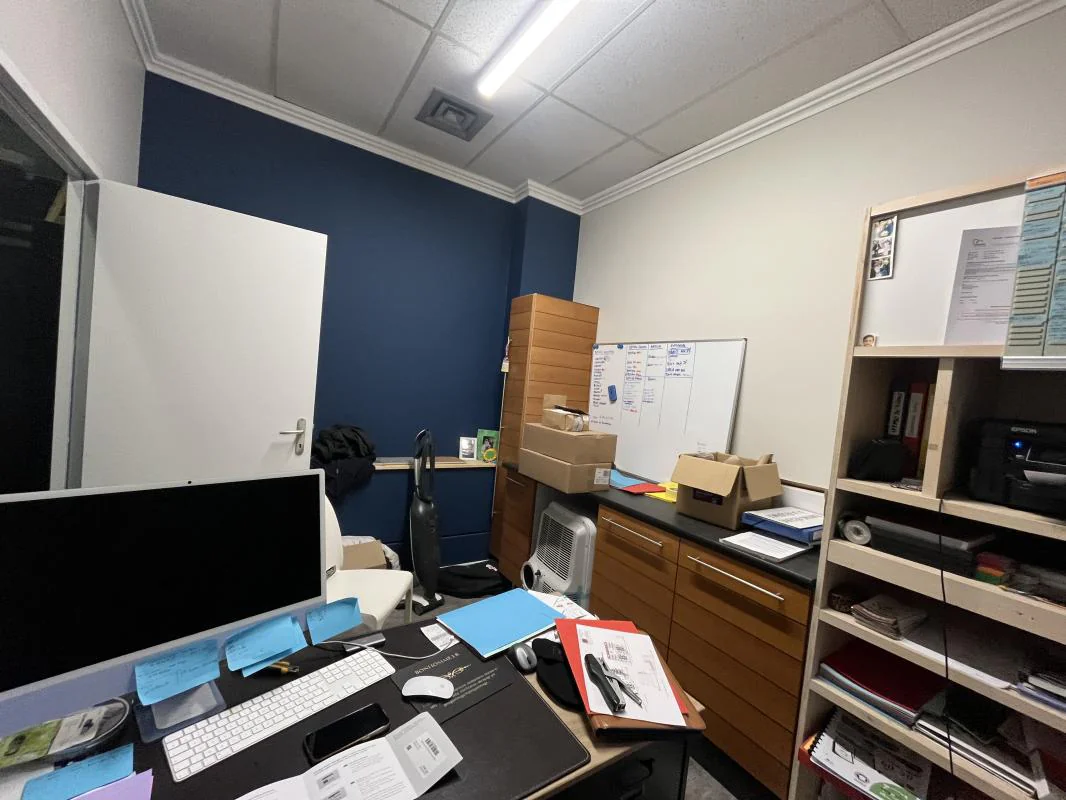 - une partie bureaux d'une surface de 133.37m² (hauteur sous plafond : 3m) avec sas d'accès direct au dépôt composé : d'un grand bureau (ou salle de pause) d'une surface de 14.70m², une partie sanitaire (avec douche, lavabo et toilette) en plus d'un toilette indépendant. Une grande pièce de 20.36m² , un bureau de 15.47m² avec pièce de rangement de 9.80m², un bureau ou vestiaire de 27.76m² ainsi qu'une pièce archive de 13.03m².