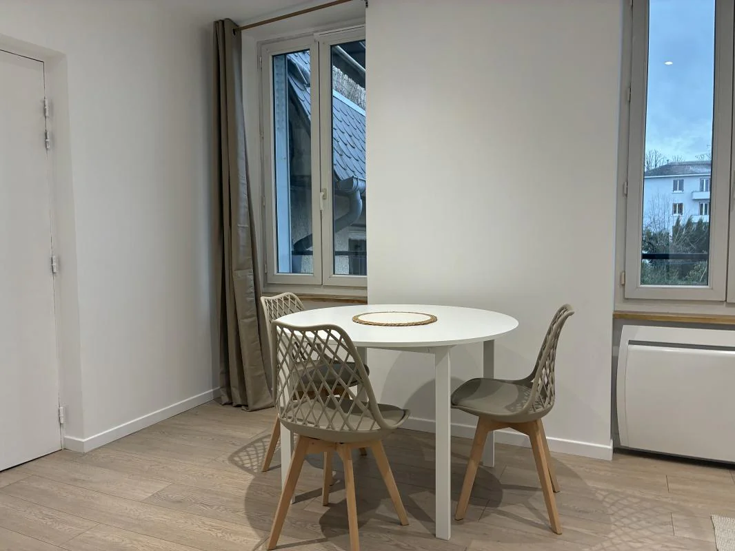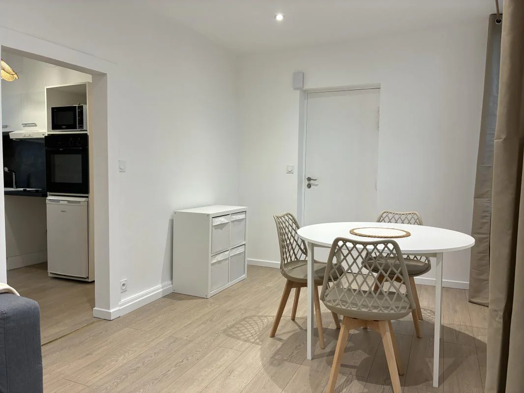 Un appartement T2 équipé comprenant une pièce principale avec une table et trois chaises, un canapé, une table basse, un meuble télé, un meuble à cases. Une cuisine avec éléments hauts et bas, un four, un réfrigérateur-congélateur, un four à micro-ondes, une plaque de cuisson, une hotte, un meuble “bar” et deux tabourets. Une chambre avec un lit, un bureau et une chaise . Une salle d'eau avec un meuble vasque, une cabine de douche et un toilette. Chauffage individuel électrique.
