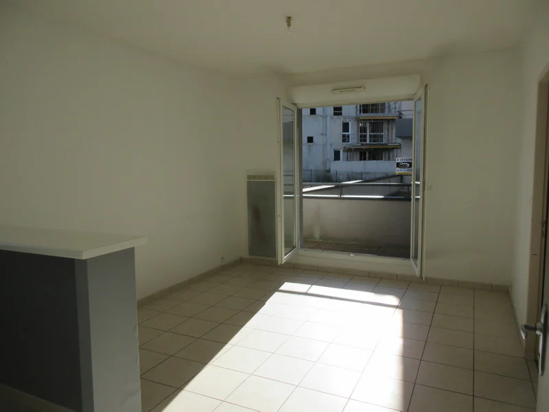 Une pièce principale donnant sur un balcon, un coin cuisine séparé par un meuble comptoir (avec un ensemble de placards hauts et bas, une hotte, une plaque deux feux électriques, un frigo, branchement lave linge), une chambre (avec un placard de rangement) et une salle de bain (avec une baignoire, un wc, un meuble vasque avec un coin rangement et un radiateur sèche serviette). Chauffage individuel électrique programmable, ascenseur et visiophone.