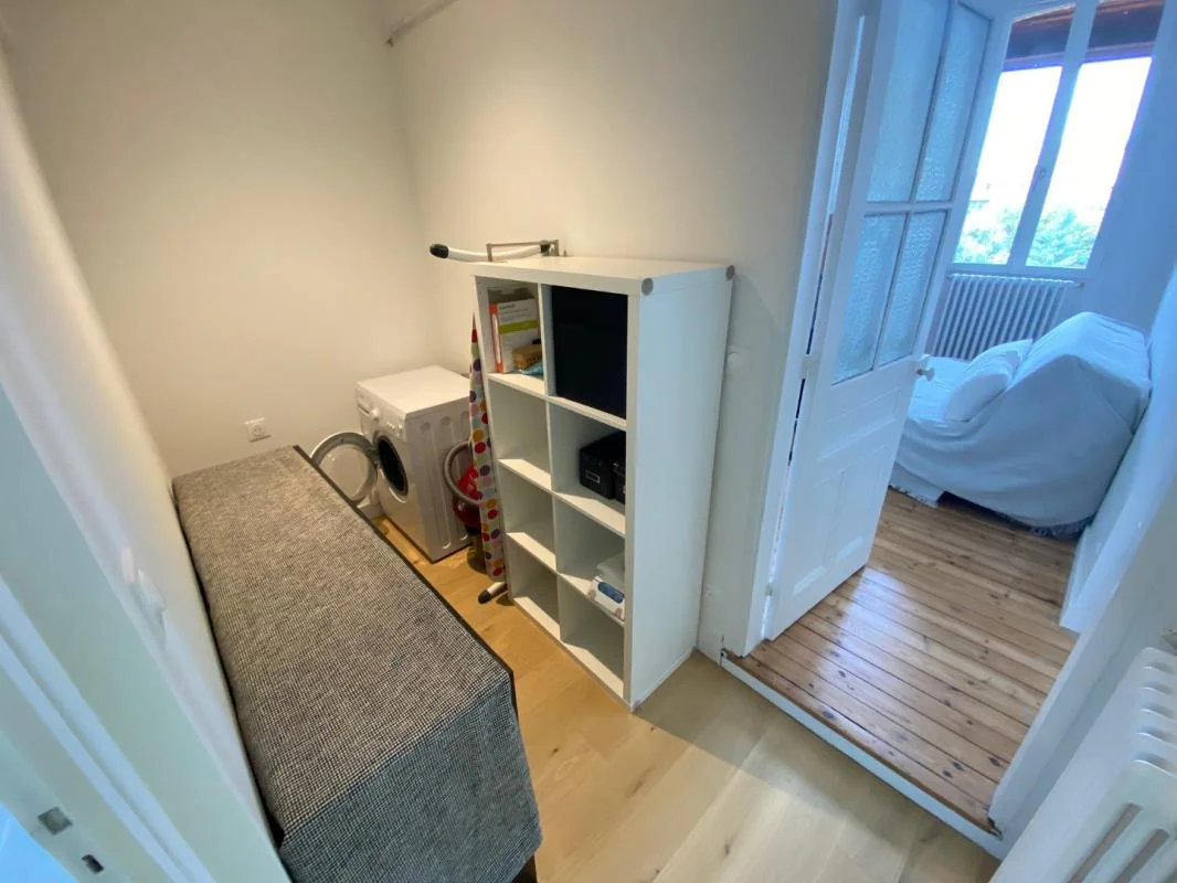 Il se compose d'une entrée, d'un séjour ouvert sur une cuisine américaine aménagée et équipée donnant sur un petit balcon, d'un salon ou d'une chambre, d'un coin buanderie, d'une chambre avec placard et Bureau, une salle d'eau avec douche à l'italienne et wc ainsi qu'un toilette indépendant.