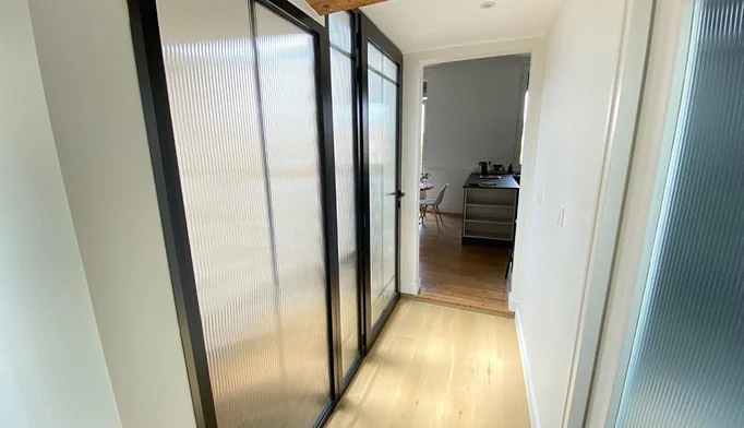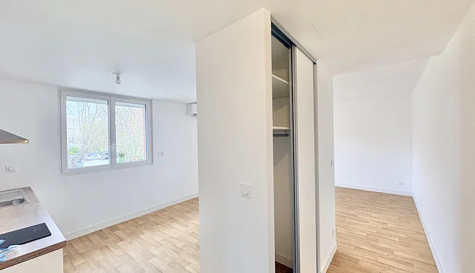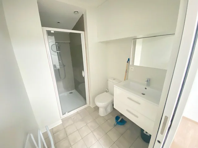 Il se compose d'une entrée, d'un séjour ouvert sur une cuisine américaine aménagée et équipée donnant sur un petit balcon, d'un salon ou d'une chambre, d'un coin buanderie, d'une chambre avec placard et Bureau, une salle d'eau avec douche à l'italienne et wc ainsi qu'un toilette indépendant.
