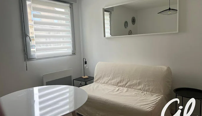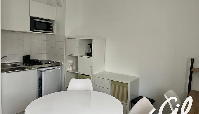 Appartement / studio au 2ème étage d'une résidence bien entretenue, bon état composé d'une entrée avec placards, d'une cuisine aménagée avec un frigo et des plaques électriques et d'une pièce de vie.
