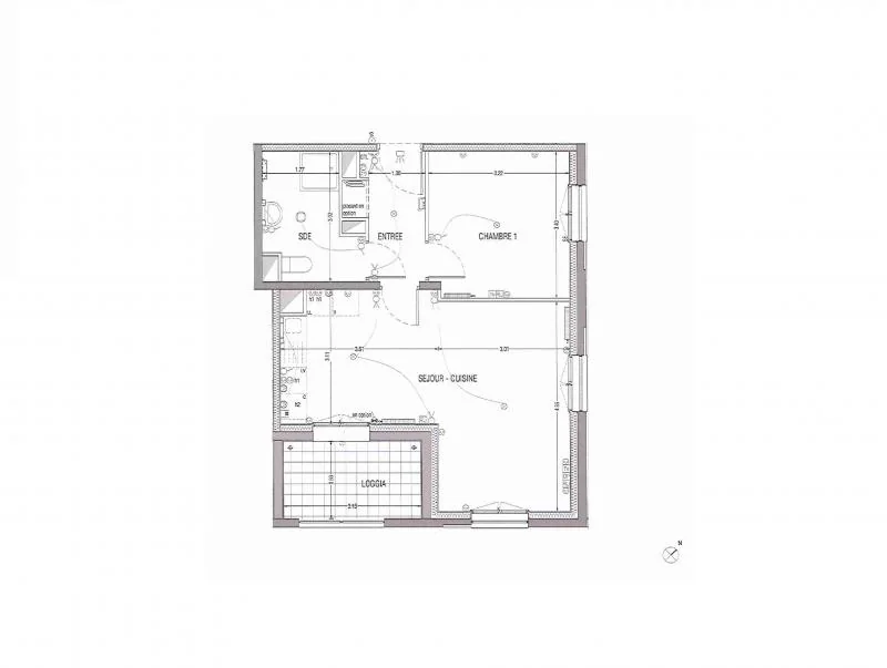 Cet appartement est composé d'une loggia de 5.7 m², une entrée, un séjour avec une cuisine aménagée et équipée (une hotte et une plaque vitro), une chambre, une salle d'eau avec meuble vasque, un placard aménagé dans l'entrée, et un WC -
