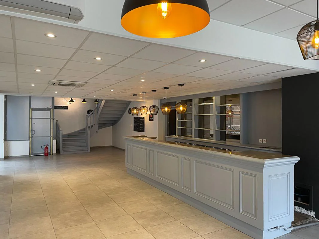 A louer local de 280m² sur 2 niveaux (136 au RDC et 144 au 1er) avec bel emplacement, au coeur du 7ème ardt, proximité métro Gerland et Debourg, et Tram sur l'avenue Debourg, nombreux commerces aux alentours, un local en pied d'immeuble pouvant accueillir la restauration, avec une grande salle au RDC avec bar sur tout la longueur, et un WC accès PMR et à l'étage: 2 salles de restauration avec cuisine indépendante à aménager, et espaces sanitaires avec 3 WC.