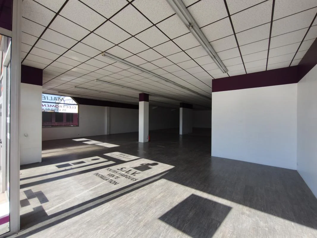 Local commercial avec vitrines (20 m de long) donnant sur la Route de Séverac, belle surface de vente de 310 m² environ avec réserve d'une surface approximative de 68 m², un bureau de 20 m².