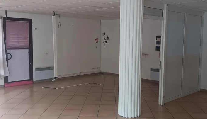 Local d'une superficie d'environ 40m², une pièce, un bureau, un local archives, rangement, wc