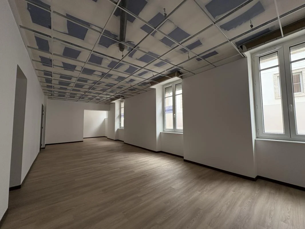 Local professionnel ou commercial à proximité immédiate du centre ville de plain pied au RDC d'une surface approximative de 60 m² permettant d'aménager 3 bureaux avec banque d'accueil et salle d'attente. WC PMR. Un parking et une cave.
