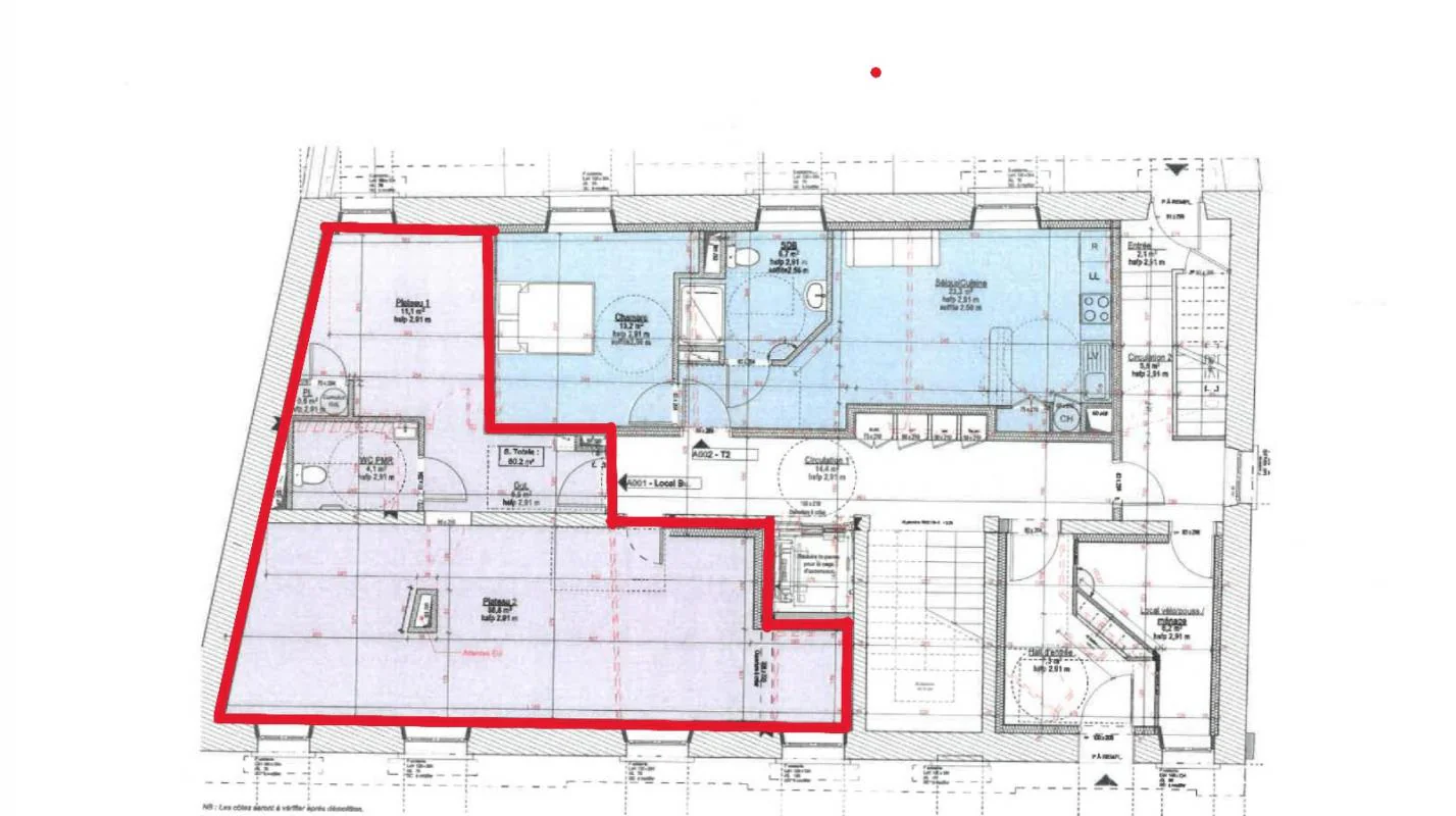 - Surface de bureaux : 60 m²