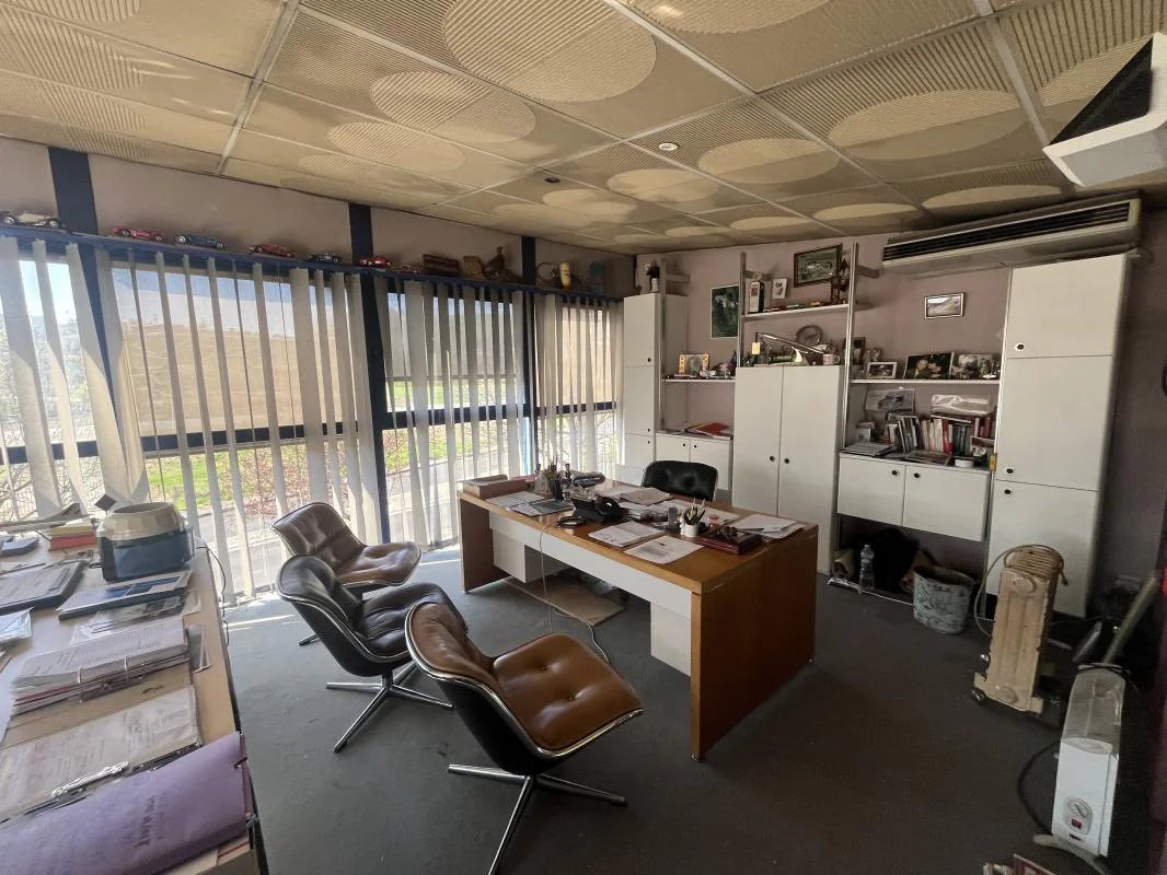 Étage (accès par escalier interne + grande mezzanine) : 3 bureaux, salle de réunion (pouvant servir de bureau supplémentaire)