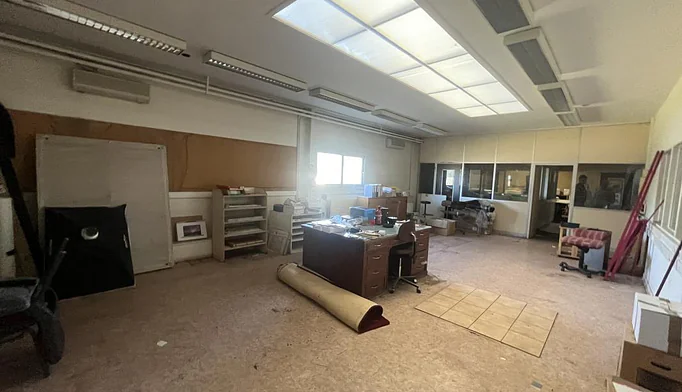 Au rez-de-chaussée, une entrée avec accueil de 20 m² environ, 3 bureaux (dont un sur mezzanie), local technique, chaufferie et toilettes. Au sous-sol, une salle de réunion d'une surface de 20 m² environ avec petite pièce archive à l'arrière (4 m²).