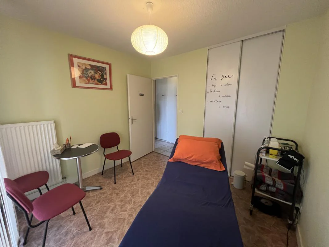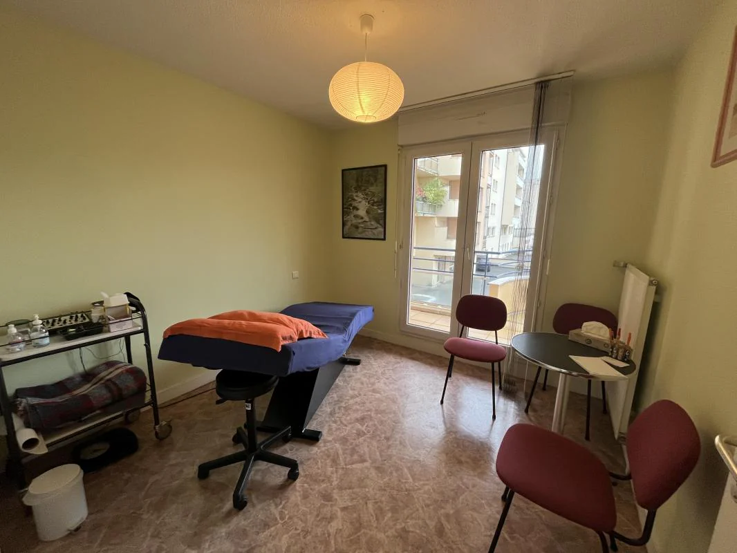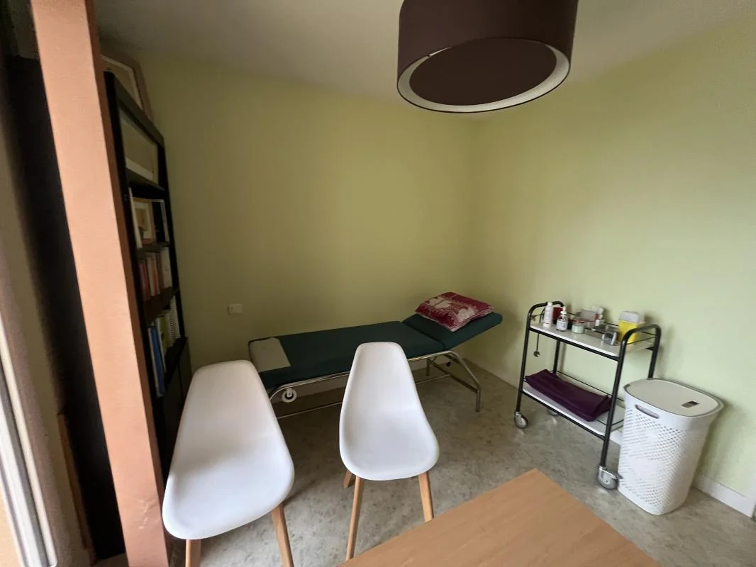 Composition : Hall d'accueil avec placard, salle d'attente lumineuse donnant sur un balcon filant, Bureau principal face à l'entrée, fonctionnel (équipé d'un plan de travail et d'un lavabo), avec accès au même balcon, WC indépendant, salle de bains (rare et très appréciée dans ce type de locaux !), deux bureaux complémentaires côté parking, avec une seconde terrasse filante.