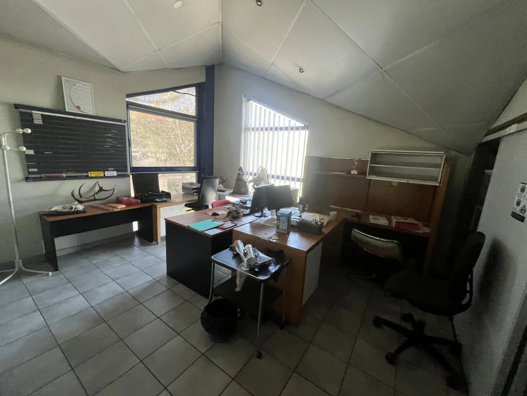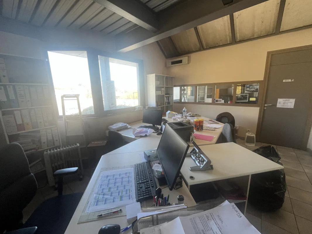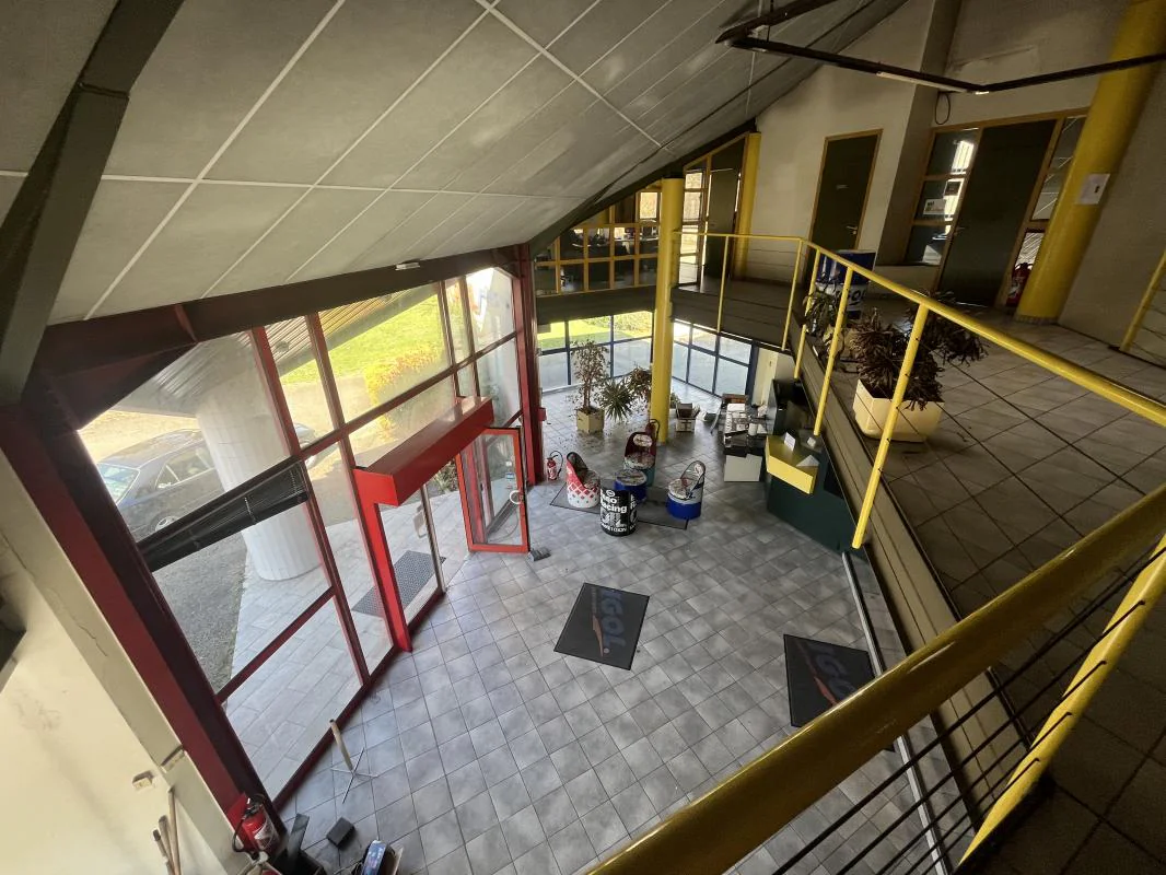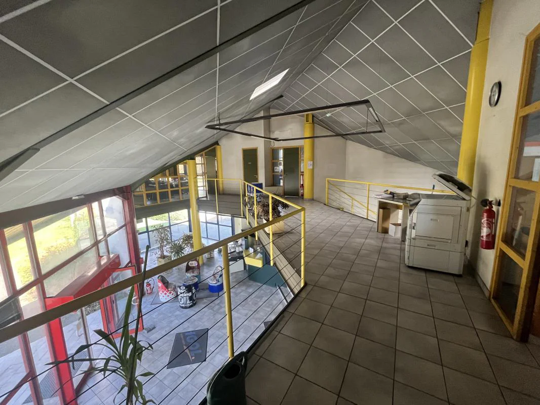 Étage (accès par escalier interne + grande mezzanine) : 3 bureaux, salle de réunion (pouvant servir de bureau supplémentaire)