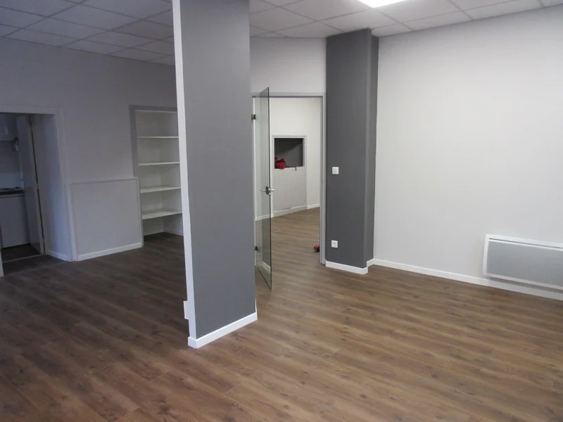 1 open space d'environ 33m² permettant de positionner 2 à 4 postes de travail qui peut être cloisonné pour faire 2 grands bureaux.