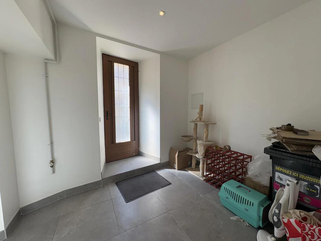 Au rez-de-chaussée, vous trouverez un hall d'entrée, des toilettes indépendantes, une salle d'eau, une buanderie, ainsi qu'une belle pièce de vie spacieuse avec cuisine semi équipée ouverte sur le salon séjour. La pièce de vie offre un accès direct à l'extérieur grâce à une porte-fenêtre.