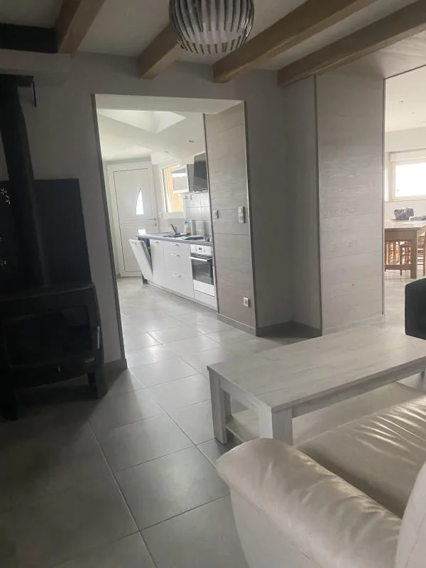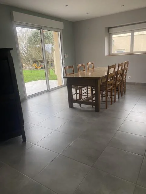 Un hall d'entrée avec placard - Un salon séjour donnant sur terrasse. Une cuisine équipée avec placards hauts et bas, plaque induction, hotte, donnant sur terrasse. Trois chambres dont deux avec placards. Une salle d'eau avec branchement lave linge. Un Wc indépendant. Garage fermé + stationnement devant maison. Une terrasse + un jardin