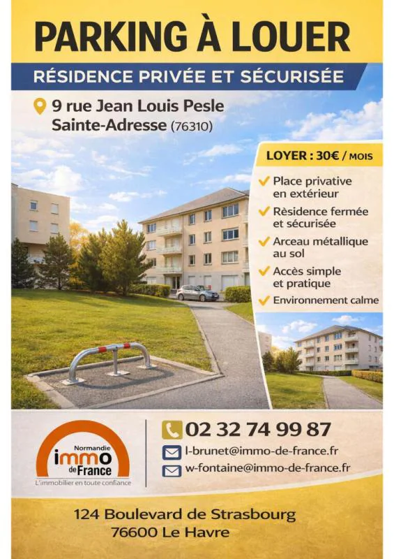 Place de parking en sous-sol à louer sur Montivilliers au 52 avenue Maréchal Foch,